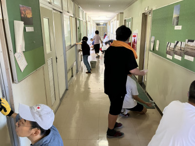 2024年9月14日 10時57分毎年この時期に行っています環境整備作業、3連休初日の朝9時より生徒、保護者、同窓会や地域のみなさんが一緒になって教室棟2階や昇降口ろうかの壁塗りを行いました。