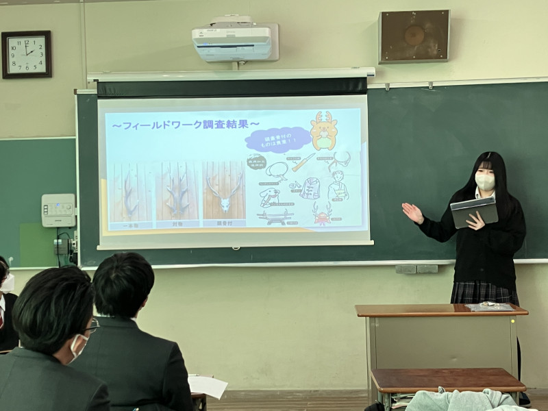 探究授業では各自が課題を設定し、その解決に向けて情報を収集・整理・分析しながら、意見交換や協働を通じて深い学びを得てきました。今日は、そんな生徒らの努力の成果が披露されました。