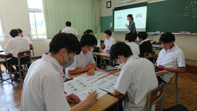 2年進学コース「家庭基礎」にて、金融教育授業を行いました。 2024年6月26日 14時44分 [MT] 職員ブログ 6/26㈬2年進学コース「家庭基礎」にて、金融教育授業を行いました。 八十二銀行の行員さんが3名来校されて「高校生向け金融リテラシー」というテーマで授業を行っていただきました。投資について学び、投資家になったつもりで、企業の株を買い、10年後の利益を計算しました。クイズ問題やグループワークを取り入れた内容で、積極的に取り組むことが出来ました。