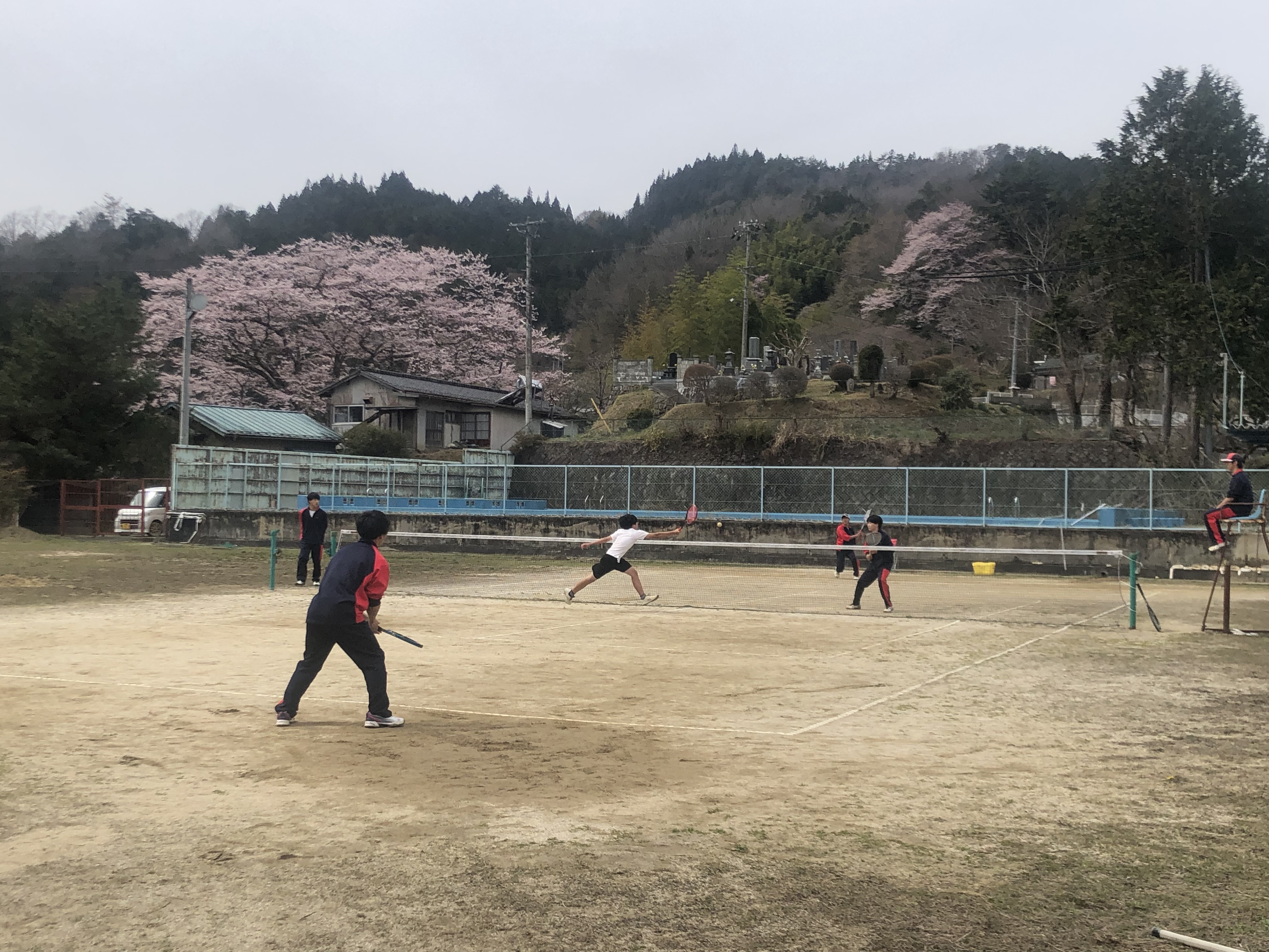 桜とテニスコート 2023年3月21日 11時19分 ソフトテニス部 テニス部です。 3月21日(火)春分の日の部活に来てみると、テニスコートの近くの桜の木がもうほとんど満開でした。 桜の木に見守られながら、部活動に励んでいます。